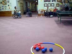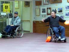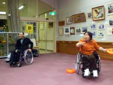午後3時過ぎから《ボッチャ》と《フライングデスク》の2種目で行われ、初めて手にする人も居て、先輩?に教わりながらの楽しい交流会でした。