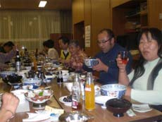 当日は夕方5時過ぎから、会員さんとその家族の人たち33名(日帰り18名、宿泊15名)の参加で、吉田支部長の挨拶に続き(有)アシストの高橋さんの乾杯で始まりました。