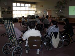 上映は【東紅苑】の職員の方々にベットのシーツを正面に張って貰うなど、簡易なスクリーンと、暗幕がなく少し明るい中での上映でしたが、山形県内で撮影され、アカデミー賞を受賞された作品を多くの会員さん鑑賞され、感動を共有したひと時でした。