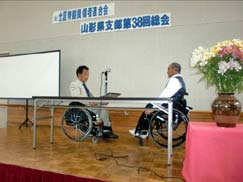 午前中の役員会に引き続き、来賓に《山形県健康福祉部障がい福祉課》太田課長さんと、《山形県身体障害者福祉協会》の横山常務理事さんをお迎えし、定刻(午後1時30分)より少し遅れて開催されました。