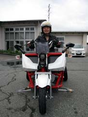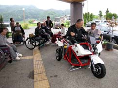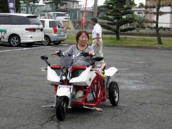 総会終了後、4月27日体験試乗したWCV(ホイールチェアビークル)が、近藤さんの好意で再び東紅苑に運んで貰い、何人かの会員さんが試乗しました。
