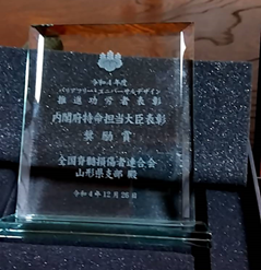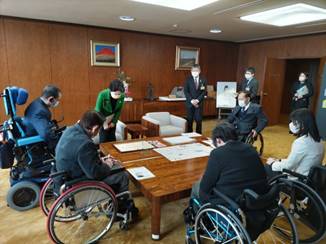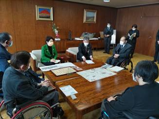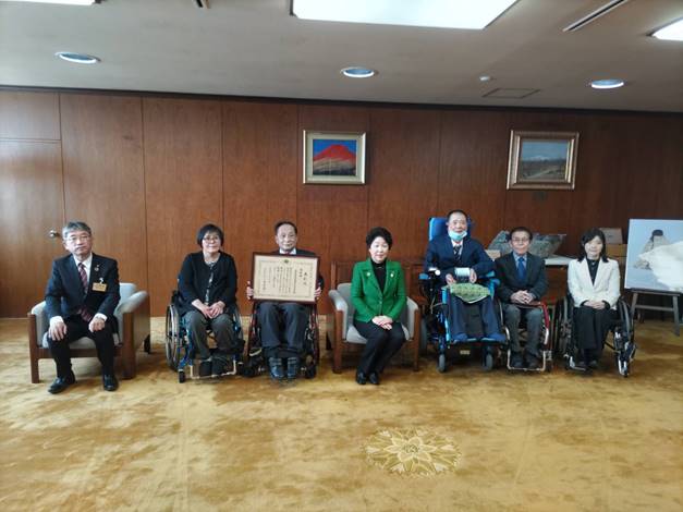 昨年12月26日、首相官邸で行われた『R4年度バリアフリー・ユニバーサルデザイン功労者』の《内閣府特命担当大臣奨励賞》を受賞したので、吉村山形県知事に報告の表敬訪問することを計画しました。
