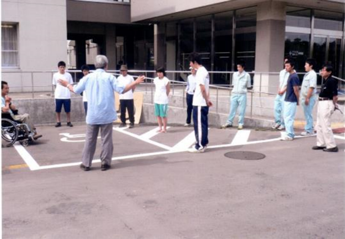 同じ年の10月には6月に山形県庁にも来られた、現全脊連理事で『車椅子使用者用駐車施設等あり方検討会』委員である半谷さんが県身障協会双葉支部の役員と一緒に鶴岡に塗装活動の手順を聞きに来られました。