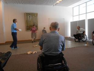 『ボッチャ交流会』は当初各チーム3ゲームづつ対戦する予定でしたが、手の使えない頚損の方たちが使う《ランプ(ボール誘導路)》の設置と投球に時間を要し、2ゲームで終了しました。