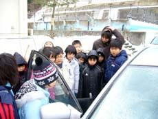 4年 M・H 君 福祉学習会に来て下さりありがとうございました。 小林さんの話を聞いて改めて車いすを使う人の大変さを知りました。昔一回だけ乗ったことがあり、とても大変だったことを覚えています。 小林さんが車いすのちゅう車場を青い色にしていると聞いてびっくりしました。それに、「色がついていると車いすのちゅう車場だとわかりやすくなるな」と思いました。(私が発案したのではなく、普及活動をしているだけですが、説明不足で勘違いされたようです) それに、車の中を見た時に外見はふつうの車なのに、中のこうぞうはぜんぜんちがってびっくりしました。 車いす体験の時は、小林さんをお手本にしました。小林さんは、動きが速くてびっくりしました。ぼくがやった時は、コースがちがったけどうまくいきました。だんさのある道は大変だったけど、一人でのぼれました。 次にドア体験をしました。小林さんを見てできました。ちゃんと開くことができました。もっとかんたんにできると思っていたけど、手に力はたくさんいるし、すべるところは進みにくくて大変だということがわかりました。 そして、これからは体の不自由な人がいたら声をかけたり助けたりして、いろんな人にやさしくせっしたいと思いました。 |