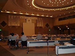 広い豪華な会場と準備に頑張っている大阪支部の方々。