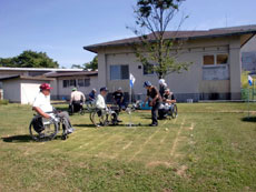 しかし、当日は快晴を通り越し、今季一番と思えるほどの暑い日になり、我々脊髄損傷者、特に頚損の方々にとっては厳しい条件でしたが、参加者は和気あいあいとゲームを楽しみました。