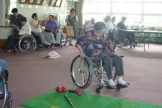 東紅苑には常時NEWスポーツであるスカットボールやビーンボーリング、公式輪投げ、アキュラシー(フライングデスク)などが設置されていて、初めての人でもすぐに覚えられる軽スポーツですが、点数を上げるには奥の深い競技でした。