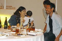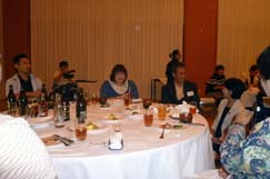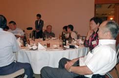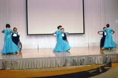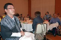 続いて、山形県身体障害者福祉協会 経営顧問の岡田久一氏より乾杯の挨拶を頂き、祝賀会が始まりました。祝宴の中のアトラクションで、車椅子ダンス(りんりん車椅子ダンスクラブ)、支部会員による歌謡ショー(甑岳清美さん)、全国総会山形大会及び震災関連ビデオ放映がありました。