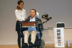 午前中、「脊髄再生研究の展望」岡野栄之(慶應義塾大学医学部教授)、「肝細胞増殖因子による筋萎縮性側素硬化症および脊髄損傷に対する再生医療の開発」青木正志(東北大学大学院教授)の2つの講演があり、午後から「神経再生医療におけるリハビリテーション」田島文博(和歌山県立医科大学教授)の講演がありました。その後3人の講師によるパネルディスカッションがありました。