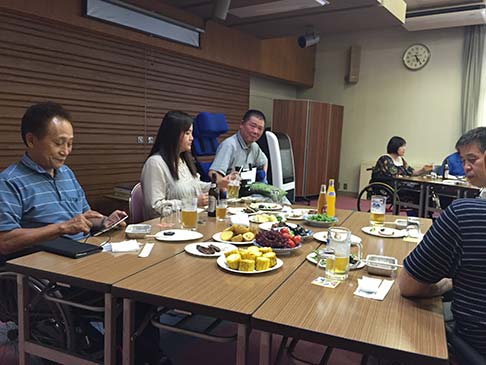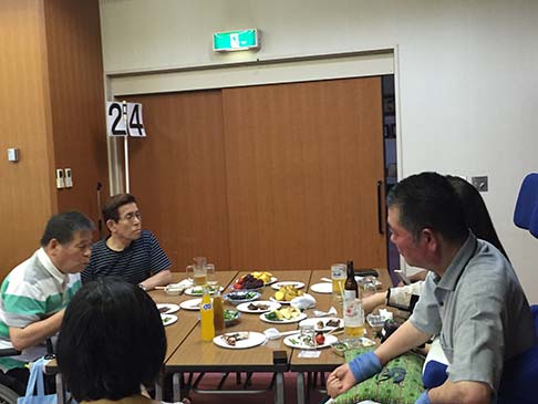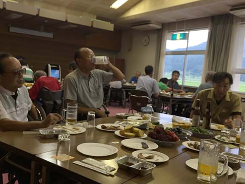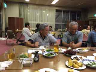 おいしい生ビールを飲んで、おいしいバーベキューを食べて、話もはずんでたのしく過ごしました。ビヤパーティーで飲み足りない方たちは、部屋に集まり二次会でした。