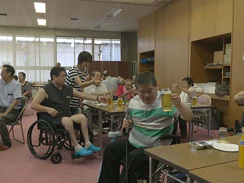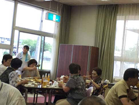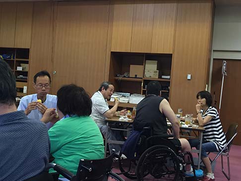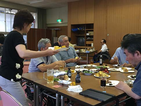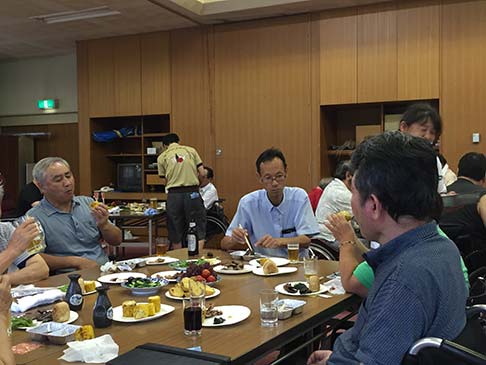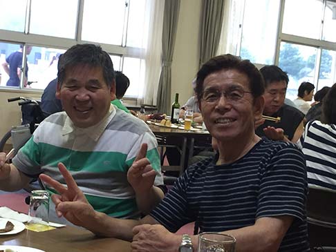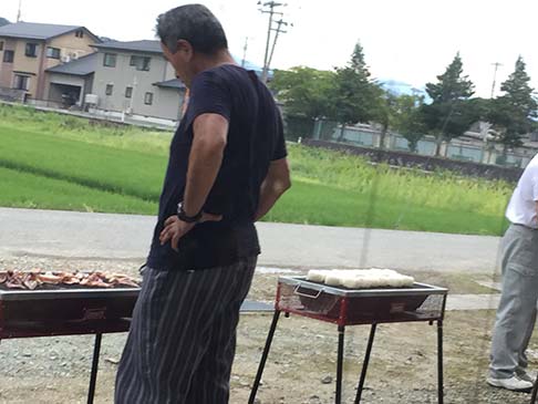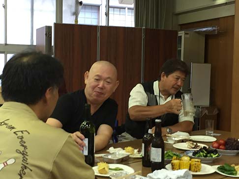卓球バレーの後はビヤガーデン。東紅園の方が、暑い中バーベキューしてくれました。