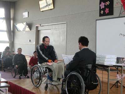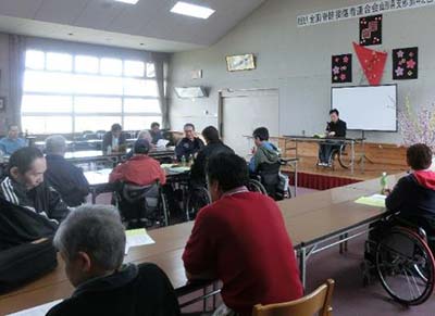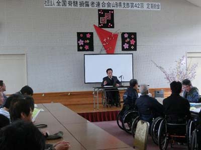 総会終了後、山形大学医学部菊地憲明先生の『脊髄損傷者の経年骨格変化と車椅子乗車姿勢について』と題した特別講演会が行われました。