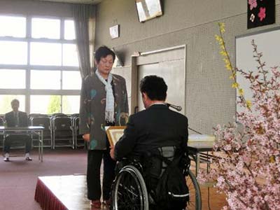 その後、来賓でお出で頂いた《山形県健康福祉部障がい福祉課大滝治雄様》《山形県身体障害者福祉協会事務局長田中義秀様》(東紅苑所長飯田靖彦様)の3氏にご祝辞を頂き式典を終了しました。