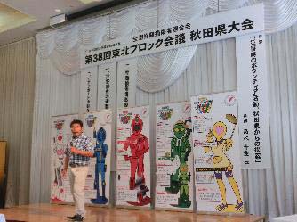 その後、秋田県支部で企画した「災害時のボランティア活動、秋田県からの提案」と題した講演会が行われ、講師の《あべ十全氏》のユーモアたっぷりの講演に参加者一同笑いながらも真剣に聞き入っていました。