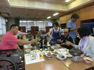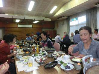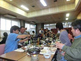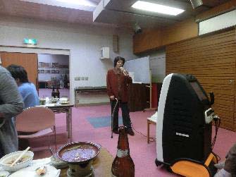 夕方5時頃からは山形名物『芋煮会』 昨年入会し始めて参加の伊藤さん夫妻を始め、会員、家族付添等総勢26名の参加で行われました。 勿論、喉のリハビリ(カラオケ)はいつもの通り。