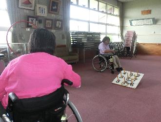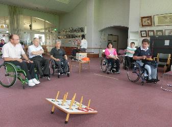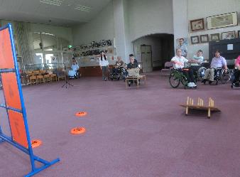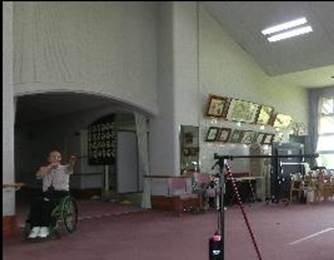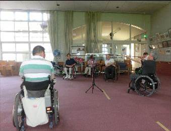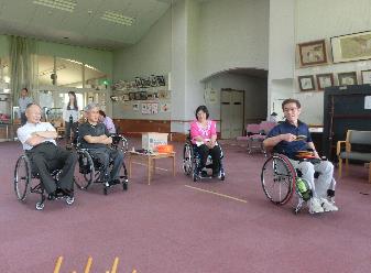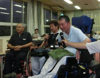 《吹き矢》は頚損の人でも出来る軽スポーツで、手で持たないでも出来るようにマイクスタンドを利用して競技をします。