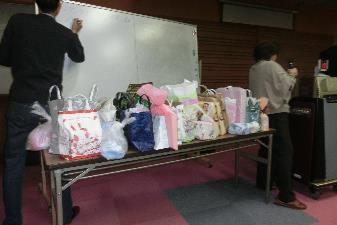 参加出来ない方から頼まれた人や、それぞれが持参した多くの景品が正面テーブルに積まれ、恒例となった『ビンゴゲーム』がスタートしました。