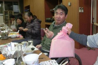 最初にビンゴになったのは新庄市の早坂さん、2番目が村山市の児玉さん、3番米沢の鈴木さん、4番目支部長介助の柳生さん、