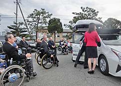 議長に勝木克己さんが選出され、事務局と各部門からの報告、決算、計画、予算に対して、全員の承認を得て、今年度の支部の運営を確認しました。議事後、新入会員の阿部圭子さん(福島から自主避難され新庄市へ)の自己紹介があり、これから共に活動されることになりました。総会終了後、トヨタカローラ山形によるウェルキャブの展示見学会があり、車椅子ごと乗車するタイプと車椅子を畳んで収納する装置のついた車両の説明会が行われました。