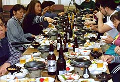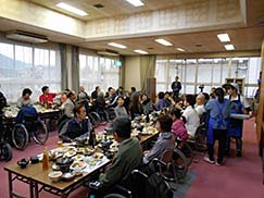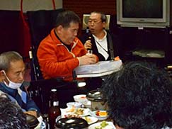 17時15分からは、長野県支部長の玉木一成様と、福島県副支部長の半谷克弘様とともに、39名の参加で懇親会が行われました。美味しい料理と酒に舌鼓を打ちながら歓談、そしてカラオケタイムを満喫しました。