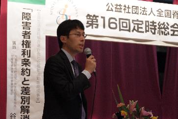 3本目の講演は内閣府、谷口雄介参事官補佐による『障害者権利条約と差別解消法について』