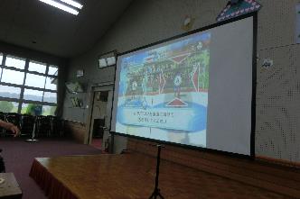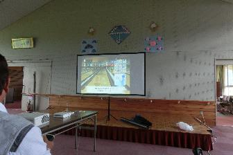 前回役員会で勝木さんから「運動しないで!?運動した気になる!?家庭用ゲームはどうだろう」と提案があり、プロジェクターで投影出来ることを確認し、実施する事が出来ました。