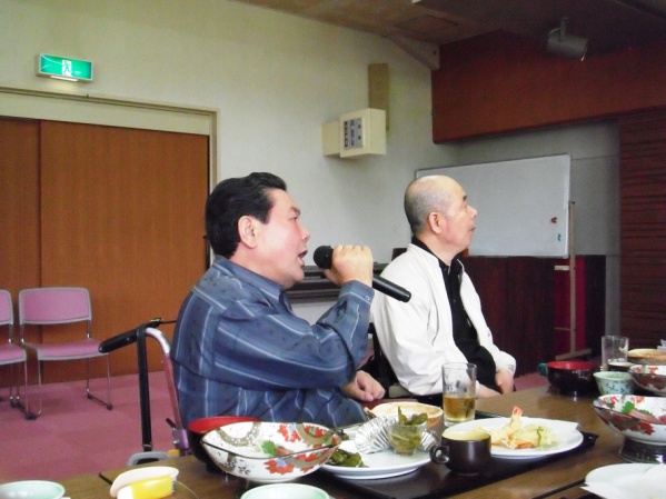 ここぞとばかりに自慢ののどを披露される一方、中には、カラオケが初めての方や久しぶりの方もいて、最初のうちは億劫な場面もありましたが、だんだんとマイクを持つ手つきも定まって来て、積極的な選曲をするようになりましたね。ビールや日本酒が気持ちと喉をなめらかにしたのでしょうか…?