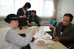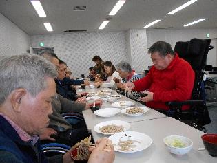 本年6月『第18回総会山形県大会』終了後、翌日に行うオプショナルツアーの一つ『そば打ち体験』のリハーサル!?を昨年12月3日、会場に予定している《東根市タントクルセンター》で行いました。
