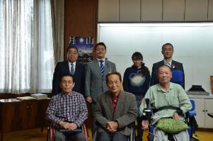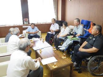 7月23日、県身体障害者福祉協会役員と支部役員3名が志田英紀県議会議長に事情説明と更新の要望を行いました。