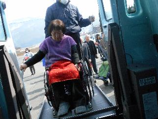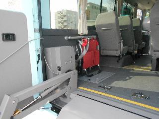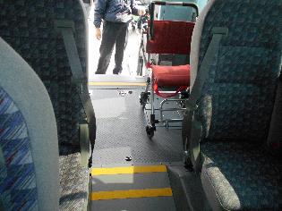 車両は以前と同じ車いす席が2台分ですが「乗り移りが出来る方様に、飛行機の座席に座るやり方と同じに小さい車椅子に移り、座席に移動できる様に」と要望していましたが、その様に完成していました。