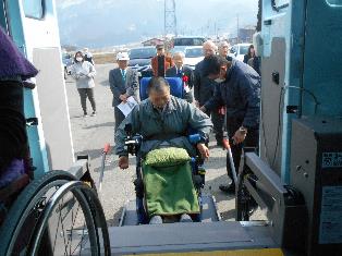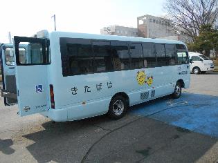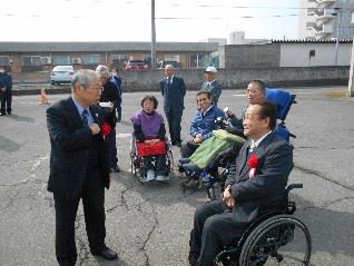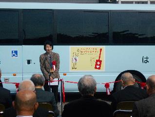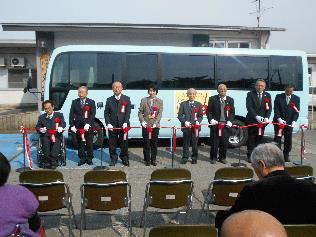 その間の送迎はレンタカーで対応していたそうですが、3月1日『新「はばたき号」運転開始セレモニー』が東紅苑駐車場で行われ、支部から中島支部長他3名が出席しました。