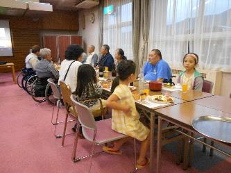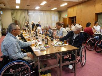 川原や海岸・キャンプ場などで行うのが一般的ですが、車いすを常用している人たちにはムリ!?(最初からやる気がない!)なこともあって、今年も10月5日(土)東紅苑で開催しました。