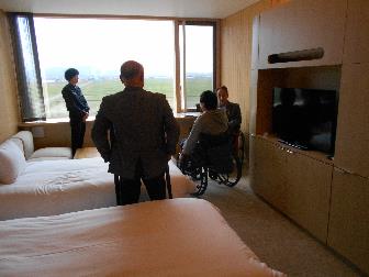 歓談しながらのランチを食べ終わった後、料理支配人でセールスマネージャーの丹羽さんに2回に分けてホテルのバリアフリールームを見せて頂きました。