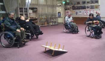 特に輪投げでは県レクルール(真ん中5点他は1点)ではなく、公式ルール(ビンゴ30点全部入れば300点)をやり、多くの方が3列に揃える事に挑戦していました。