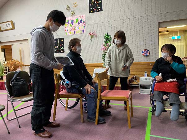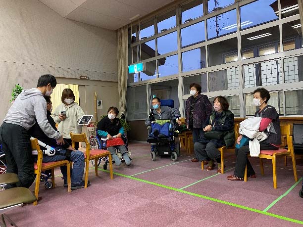 山形県支部の役員会後に訪問看護ステーションライズの廣谷さん(理学療法士)による、デモンストレーションを行ってもらいました。