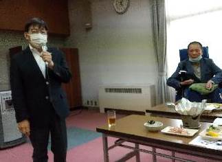 コロナ禍が続いている事から、例年よりやや広めの間隔に準備された席で中島支部長の挨拶に続き高橋公男さんに乾杯の御発声を頂きました。