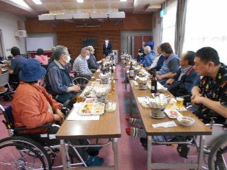 芳賀先生は皆さんの席を回られ障害者の現状、特に車椅子利用者にとってまだまだ優しくない社会である等の意見を熱心に聞かれていました。