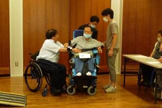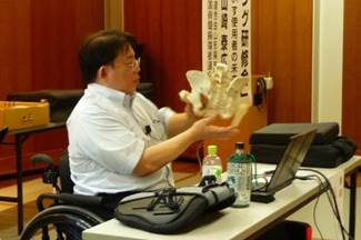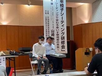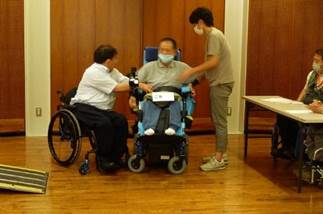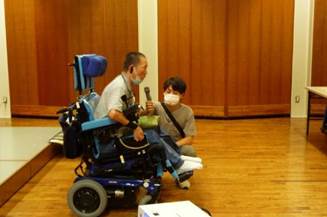 山崎さんは受講者の皆さんからの質問に答えた後、中島支部長の「姿勢によって声が出なくなる」の質問に答え、講義になかった実際のシーティングを行い、出なかった声が出るようになり、シーティングの効果を実感したようでした。