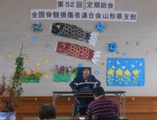 この日来賓としてお出で頂いたのは《山形県健康福祉部障がい福祉課障がい者活躍・賃金向上推進室長》の髙橋様、賛助会員でもある参議院議員の芳賀先生、《山形県身体障害者福祉協会常務理事》黒沼様、賛助会員タマツの金子様でした。