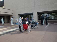 鶴岡市藤島庁舎正面車椅子駐車場の青色塗装視察 兼