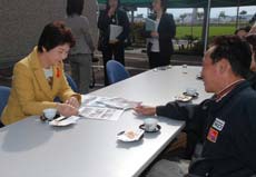 メンバーが05年から続けているスペース塗り替えの活動を説明し、「駐車帯は、庄内では公共施設を中心に浸透してきたが、置賜地方では進んでいない」と話すと。知事は「地域によって温度差があるようだ。普及を呼びかける」と答えた。