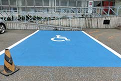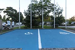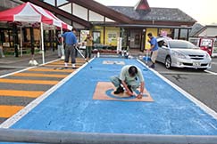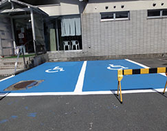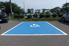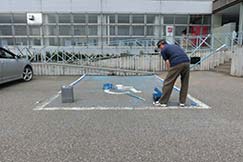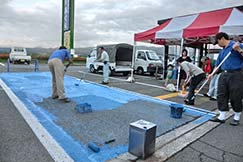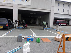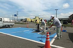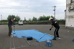当日は東根市の吉田さんと私(小林)が出向き、管理者さん準備してくれた作業員4名と共に、3箇所5台分の青色駐車場を設置塗装しました。