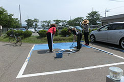 平成20年度から毎年、10万円分の材料支給で鶴岡市管理駐車場の塗装活動を実施して来ましたが、今年度の一番目として5月29日、櫛引福祉センター駐車場を佐藤センター長と職員3名で塗り替え塗装を行いました。