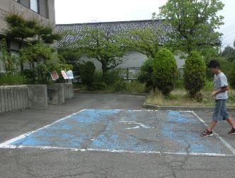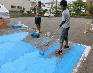 10分後に雨がふり車いすマークが少し流されてしまい、後日再塗装する