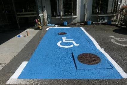 平成17年から始まった『車いす使用者用駐車施設』の全面青色塗装活動も今年で11年目を迎えました。