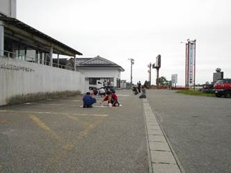 当日は午後2時少し前1年生25人が参加、白ライン班、黄色ライン班、青色塗装班の3班に分かれ実施しました。