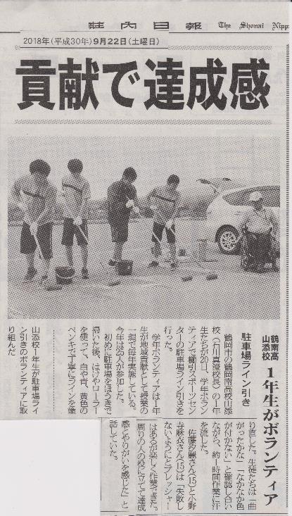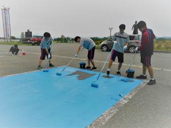 県立鶴岡南高校山添校の校外学習で、支部の庄内会員がゲートボールやカローリング等でよく利用する『櫛引スポーツセンター』駐車場のライン引きと青色駐車場の塗装を行いました。