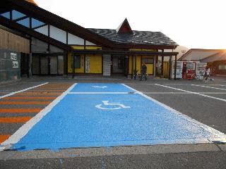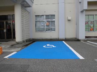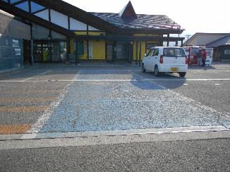 『JA庄内たがわ櫛引支所』は以前からよく利用する施設でしたが、車椅子を常用するようになったことで、全面青色駐車場を設置頂きました。(平成20年プロジェクト活動で実施)