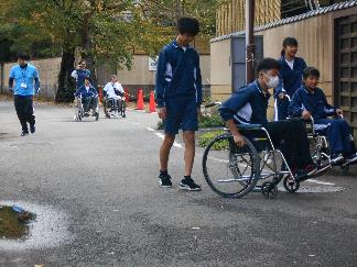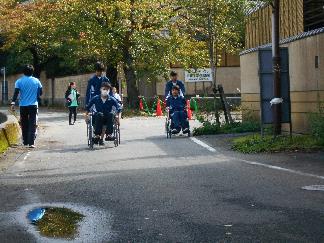 参加された学生からの質問など約40分位の講話の後は、温海温泉地内での車いす体験。
